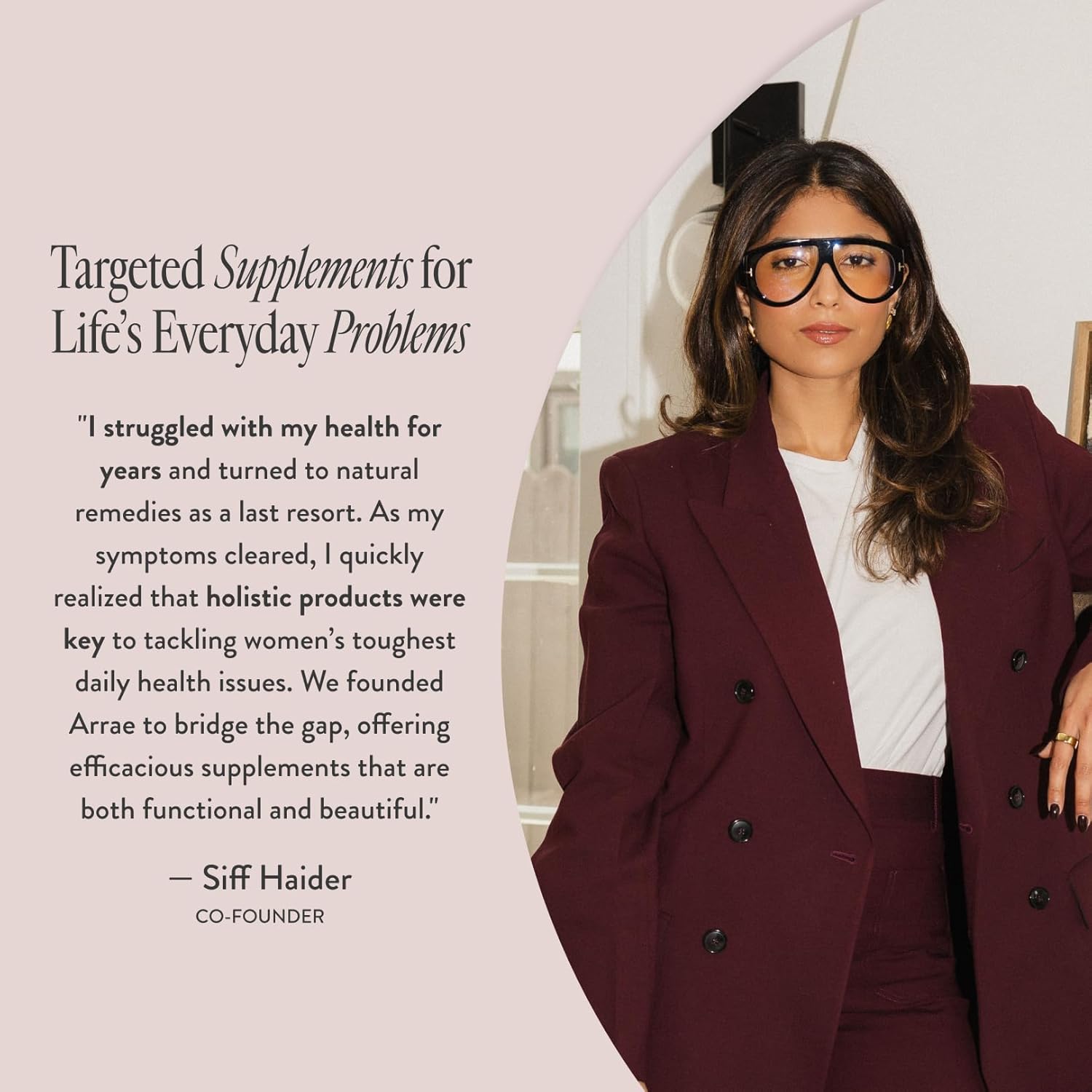 “I created Arrae because I was tired of wellness products that promised everything and delivered nothing. Coming from a fast-paced tech world, I didn’t have time for complicated routines or blind faith. Stress and fatigue piled up before I even realized it until discovering natural remedies that showed me what real working wellness could look like. So I built Arrae around a simple standard: real problems, real timelines, real proof. Every product is clinically validated, rigorously tested, and designed to deliver results you can feel, fast when needed, long-term when it matters. Wellness shouldn’t be a luxury or a guessing game. It should work."